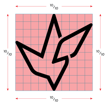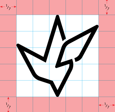 Positionnée sur un support de communication, la fleur ne dois pas être collée aux bords du document. Les fichiers qui suivent prennent en compte le "padding", soit l'espacement minimum à conserver autour de la fleur. Sur une grille de 7 colonnes égales, le padding correspond à une colonne tout autour.